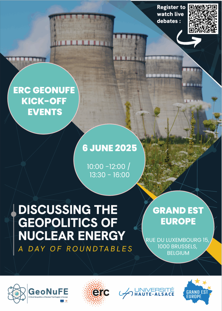 Discussing the geopolitics of nuclear energy A day of roundtables ERC GeoNuFE project kick-off events Save The Date Since 2022, the invasion of Ukraine has triggered a rapid geopoliticization of